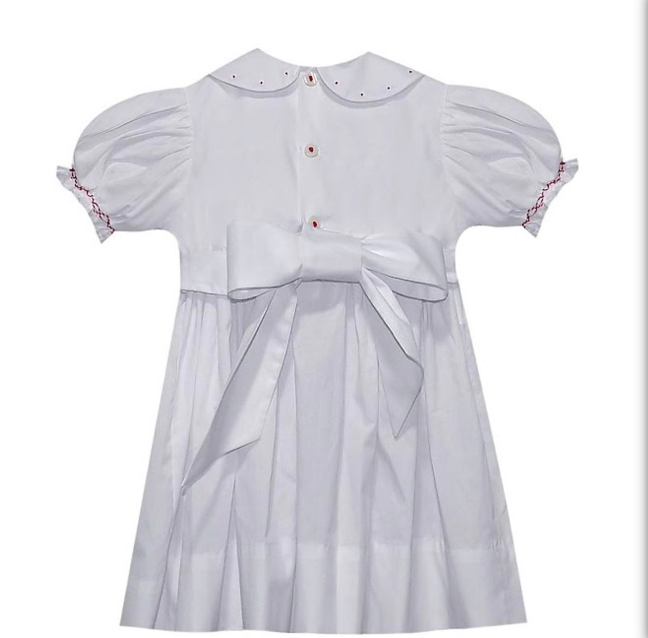 Smocked detail with a perfect bow in the back! Your little girls will be picture perfect in this beautiful dress!